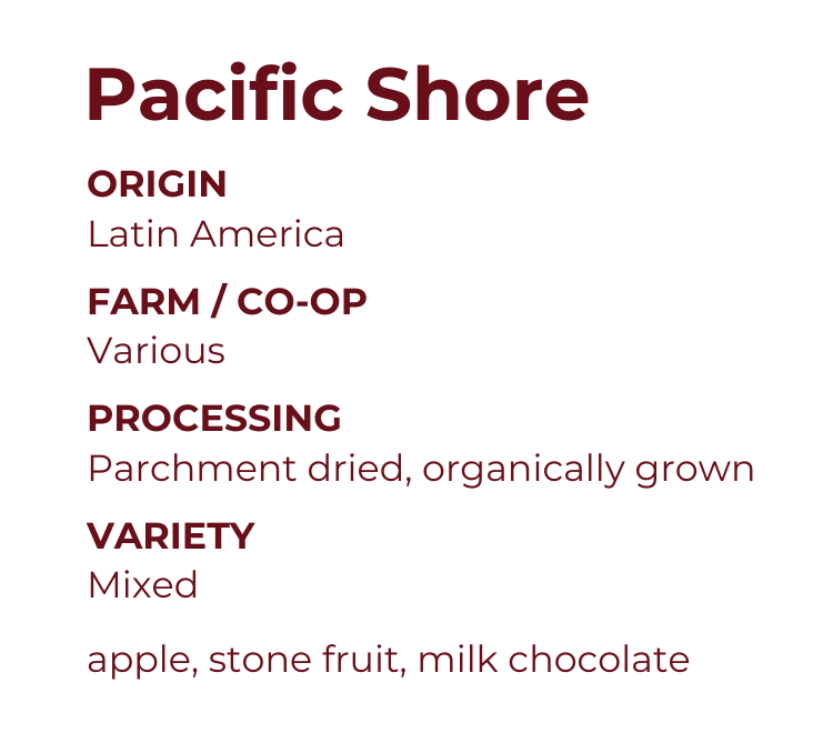 Our signature international blend is composed of coffees from Latin America, featuring lovely coffees produced by fair trade organic and women-led associations. We love the complexity that emerges from bringing these coffees together, allowing for a dynamically sweet and bright experience that is delicious as filter or espresso. This blend is one of our most popular in cafes and we really love it, too!